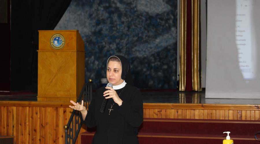 ورشة تدريبية قدمتها الأخت دميانا بدر بكل حرفية ومهنية وابداع ، استهدفت بها الهيئة التدريسية في المدرسة ، تناولت بها عدة محاور أهمها : تعريف السلوك العدواني ، وتصنيف أنواع العدوان ، وأشكال السلوك العدواني في المدرسة ، سمات السلوك العدواني في المدرسة ، أسباب السلوك العدواني عند الطلبة ، تأثير السلوك العدواني عند الطلبة و الوقاية من السلوك العدواني لدى الطلبة .