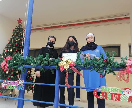 مديرة المدرسة الأخت دميانا بدر توزع شهادات ال ICDL على طلبة الصف الثامن الذين حصلوا على الشهادات